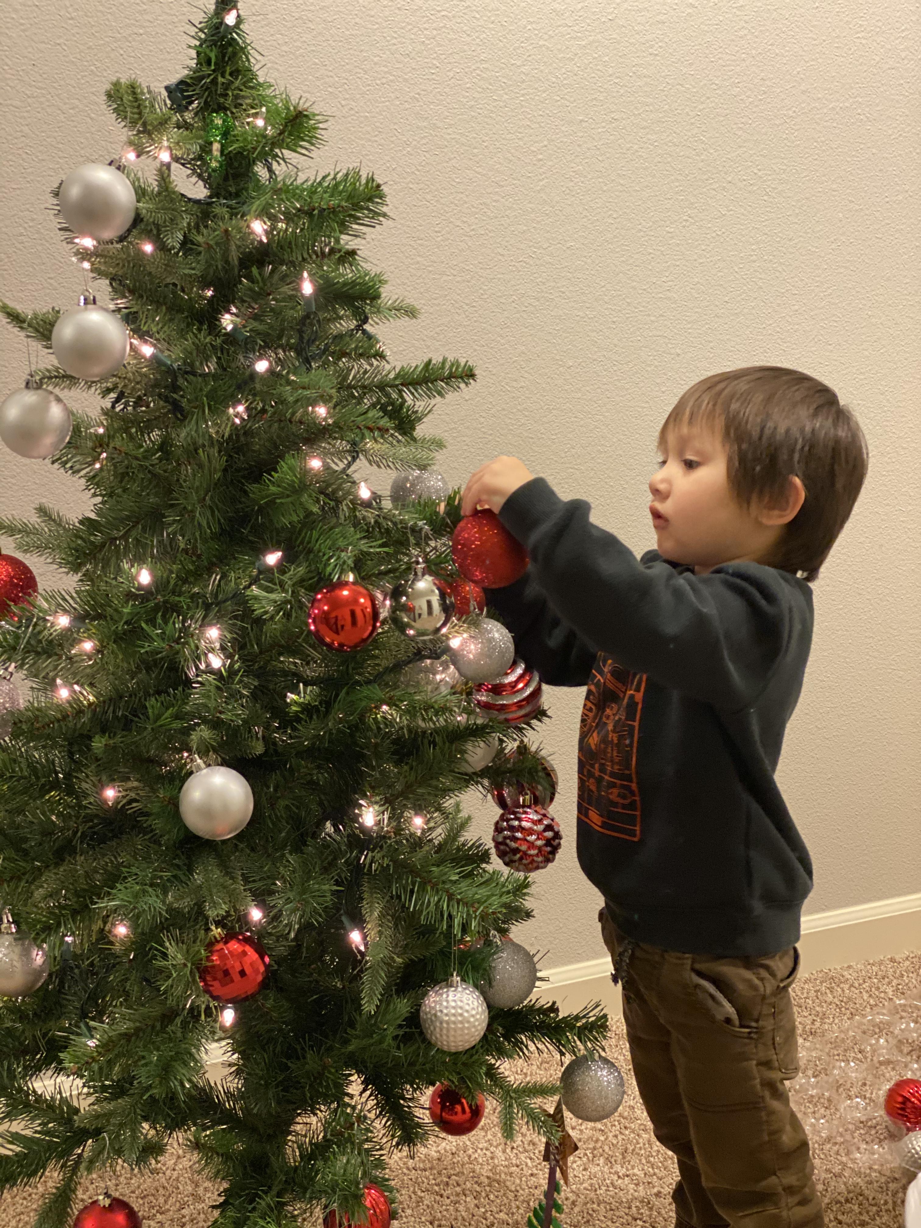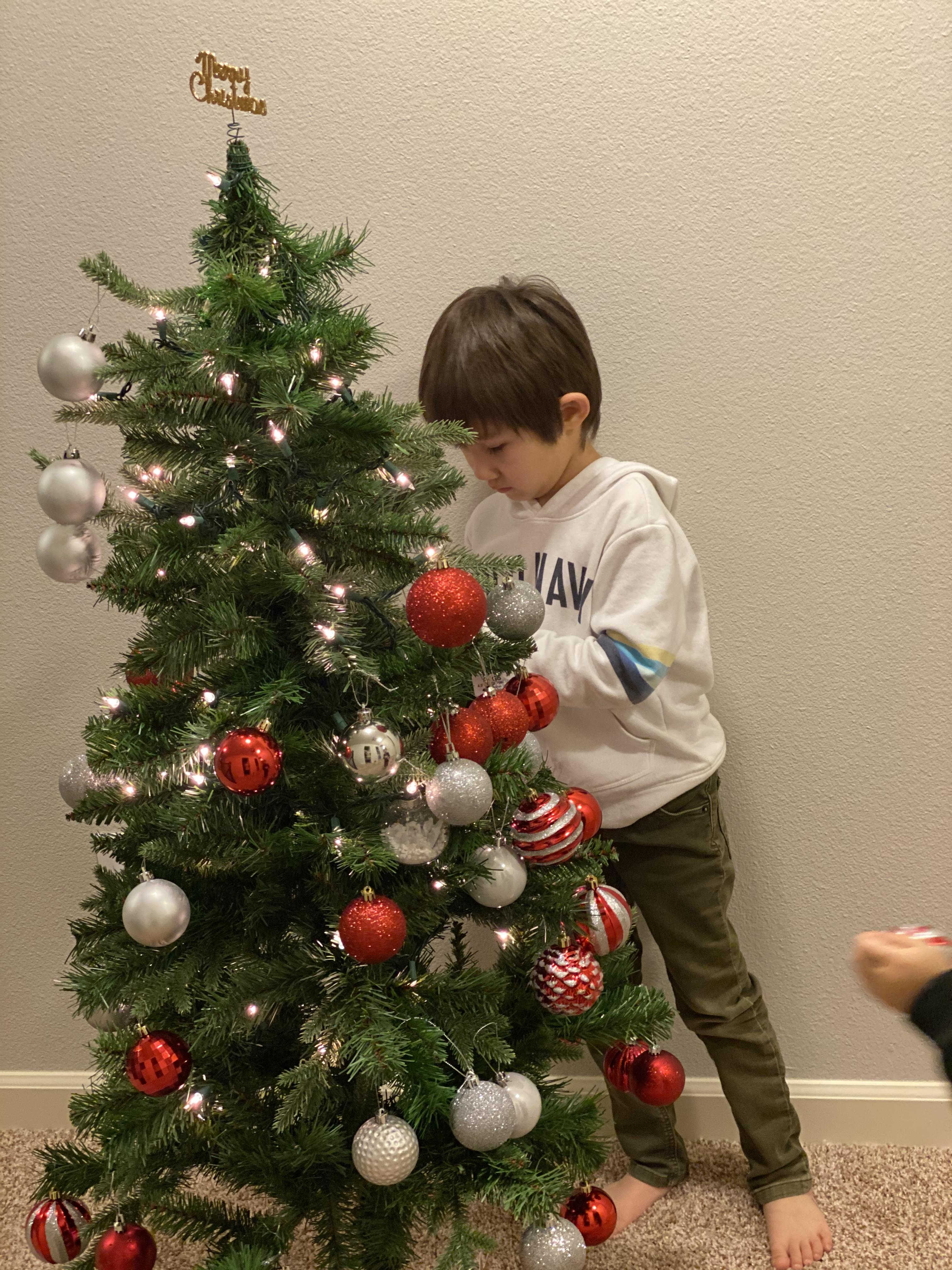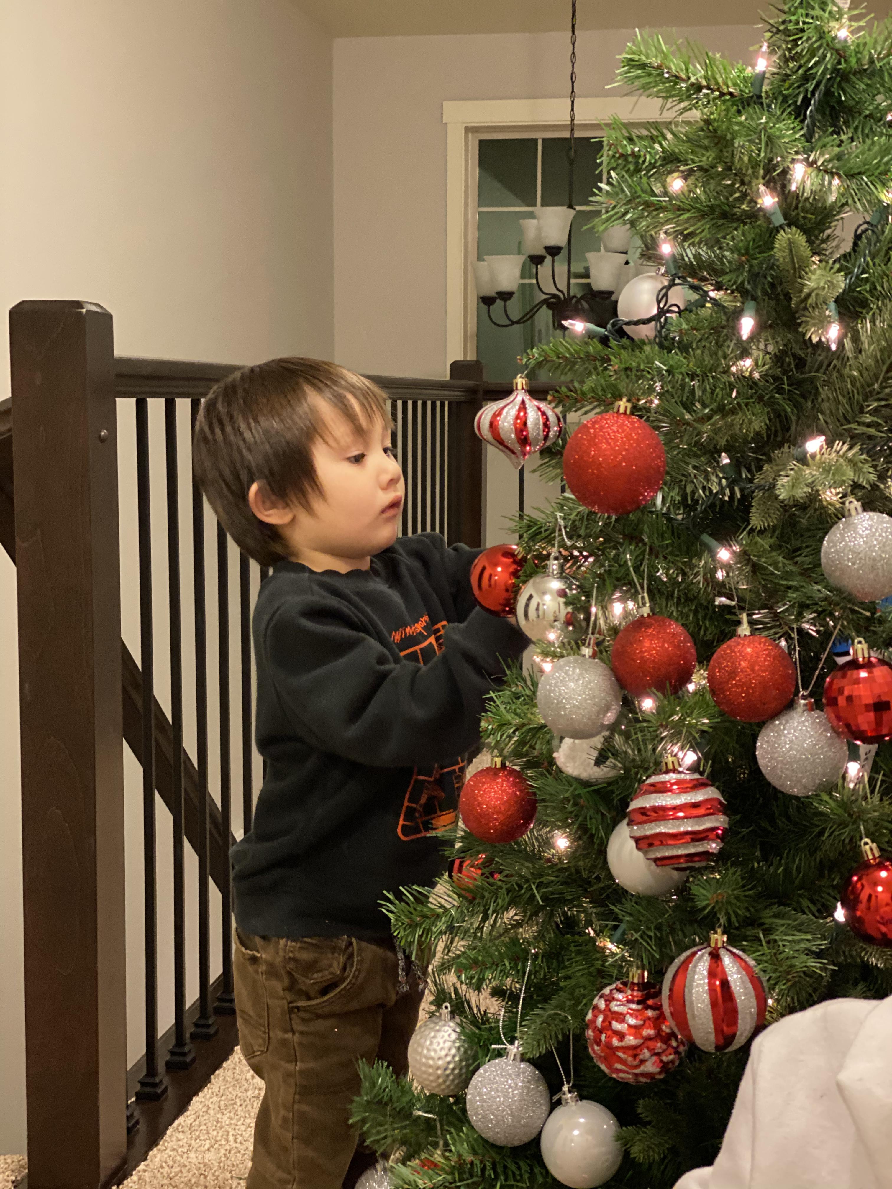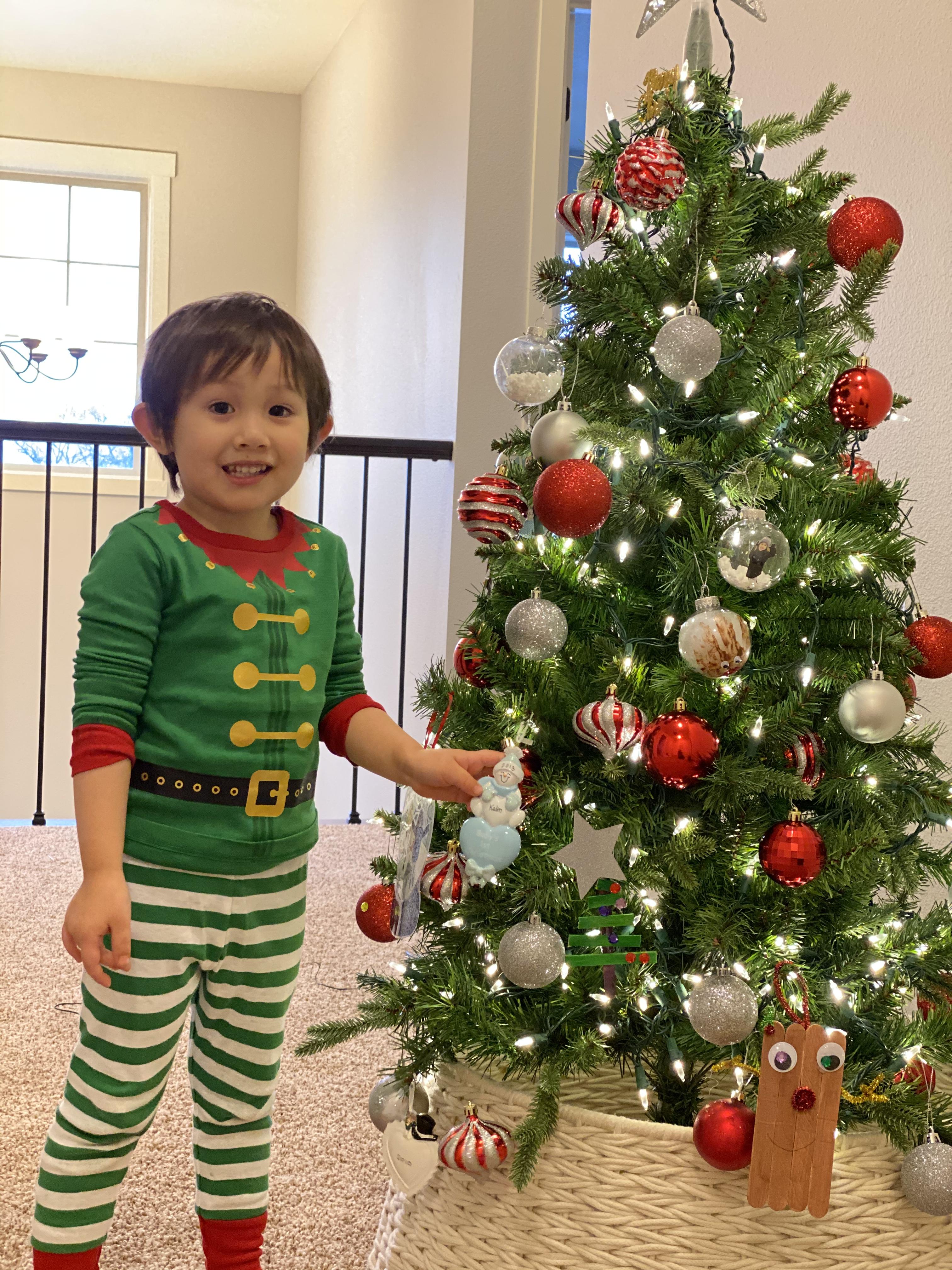 아이들의 크리스마스 트리에 라이트를 좀 더 더하고, 오너먼트 밀집 지역을 재배치 해서 좀 정리가 된 와플이 제제 트리. 제가 애들 앞에서 오너먼트 하나 다른곳으로 옮기면 난리 나거든요. 근데 이렇게 제가 바꿨는데도 눈치 못 채더라고요?