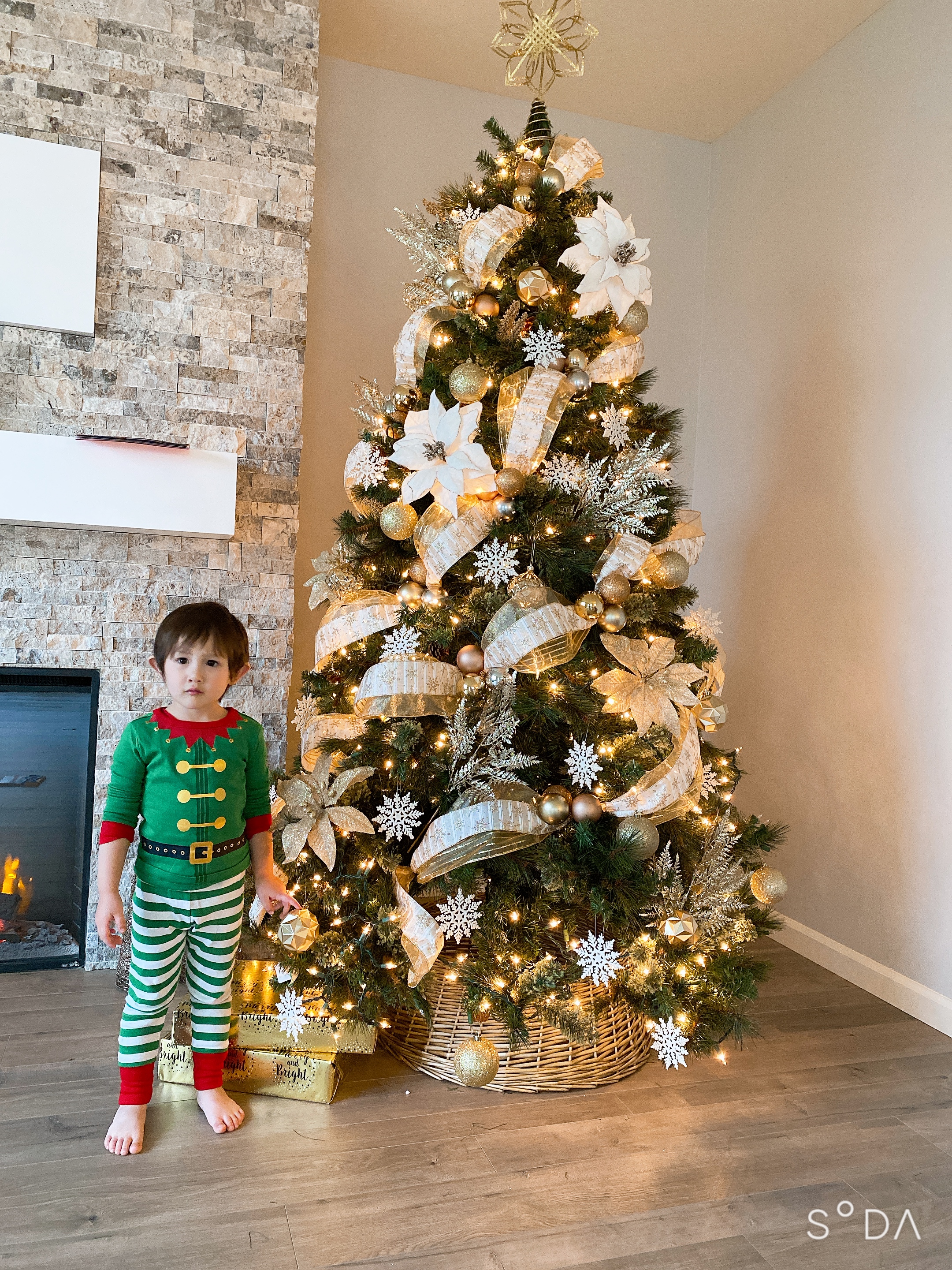 아이들 크리스마스 트리를 완성하고 제 트리도 완성했어요. 올해는 골드컬러를 테마로 정해서 블링블링한 트리를 만들었어요. 블링 블링 효과 줄려고 어플 사용해서 사진을 찍었더니 화장한 제제가 나타남요.