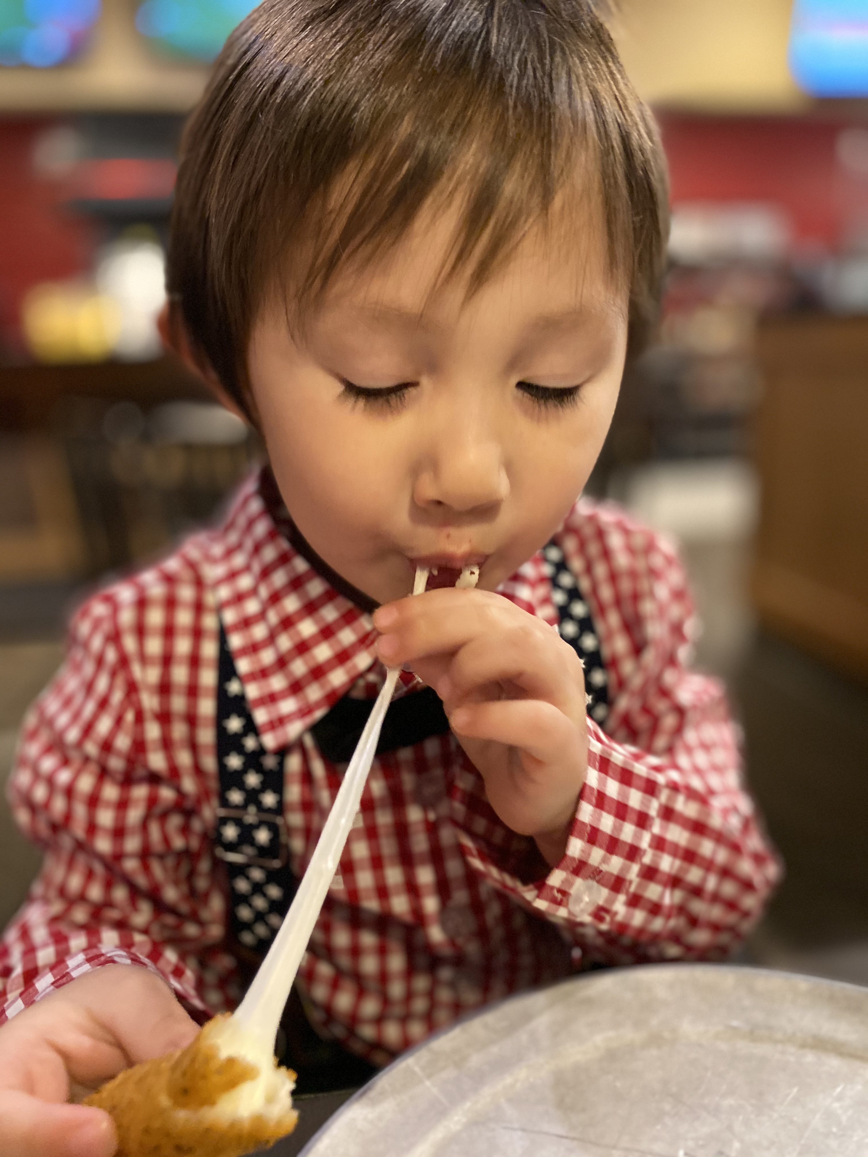 둘이서 치즈 길게 늘어뜨리기 시합 중