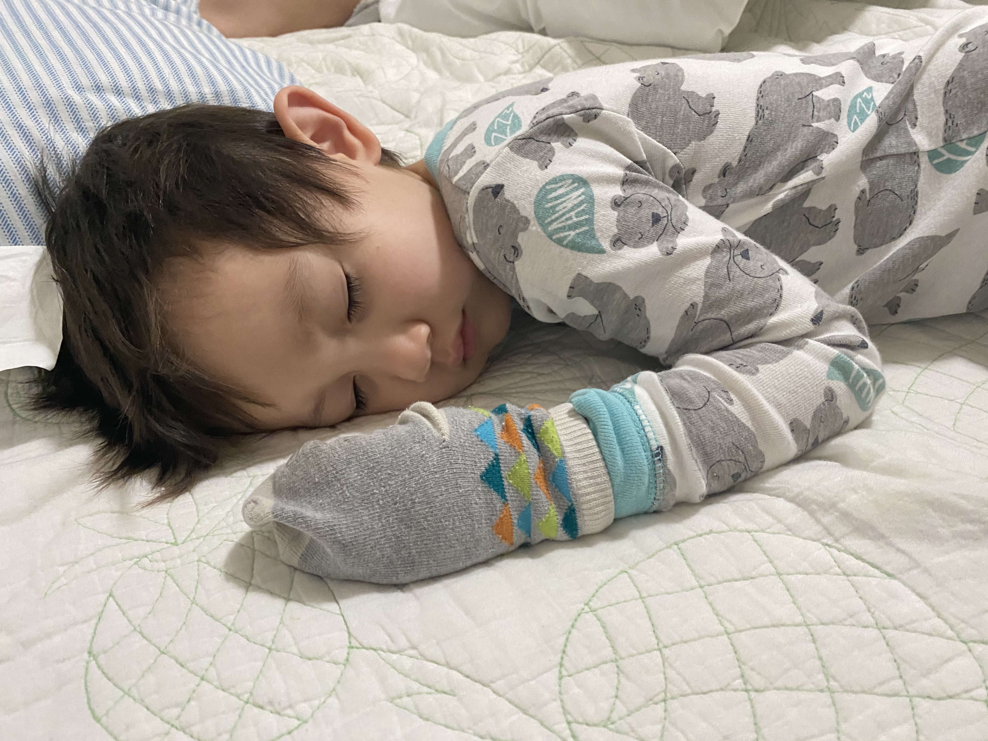 우리 제제는 그때 장갑이라는 것을 양마리 장갑으로 첫경험 한지라, 양말은 손과 발에 다 씌울 수 있는 것이라고 믿게 된 것 같아요. ㅎㅎㅎ