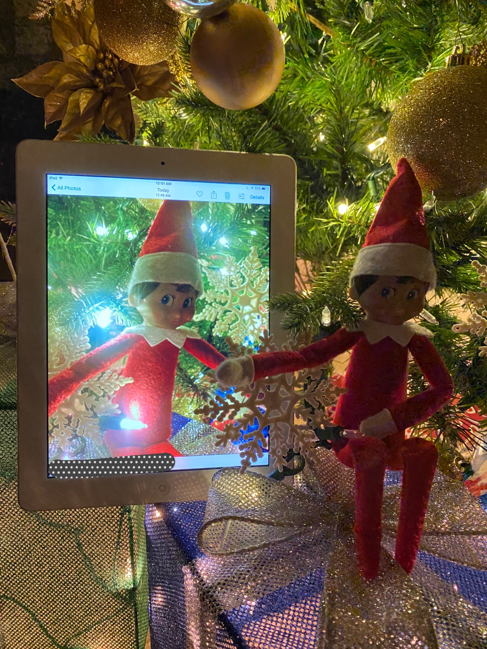 드디어 크리스마스 이브가 되어서 엘프는 이렇게 마지막 셀카를 남기고 선물을 전해 주러 온 산타와 함께 북극으로 돌아갔습니다.