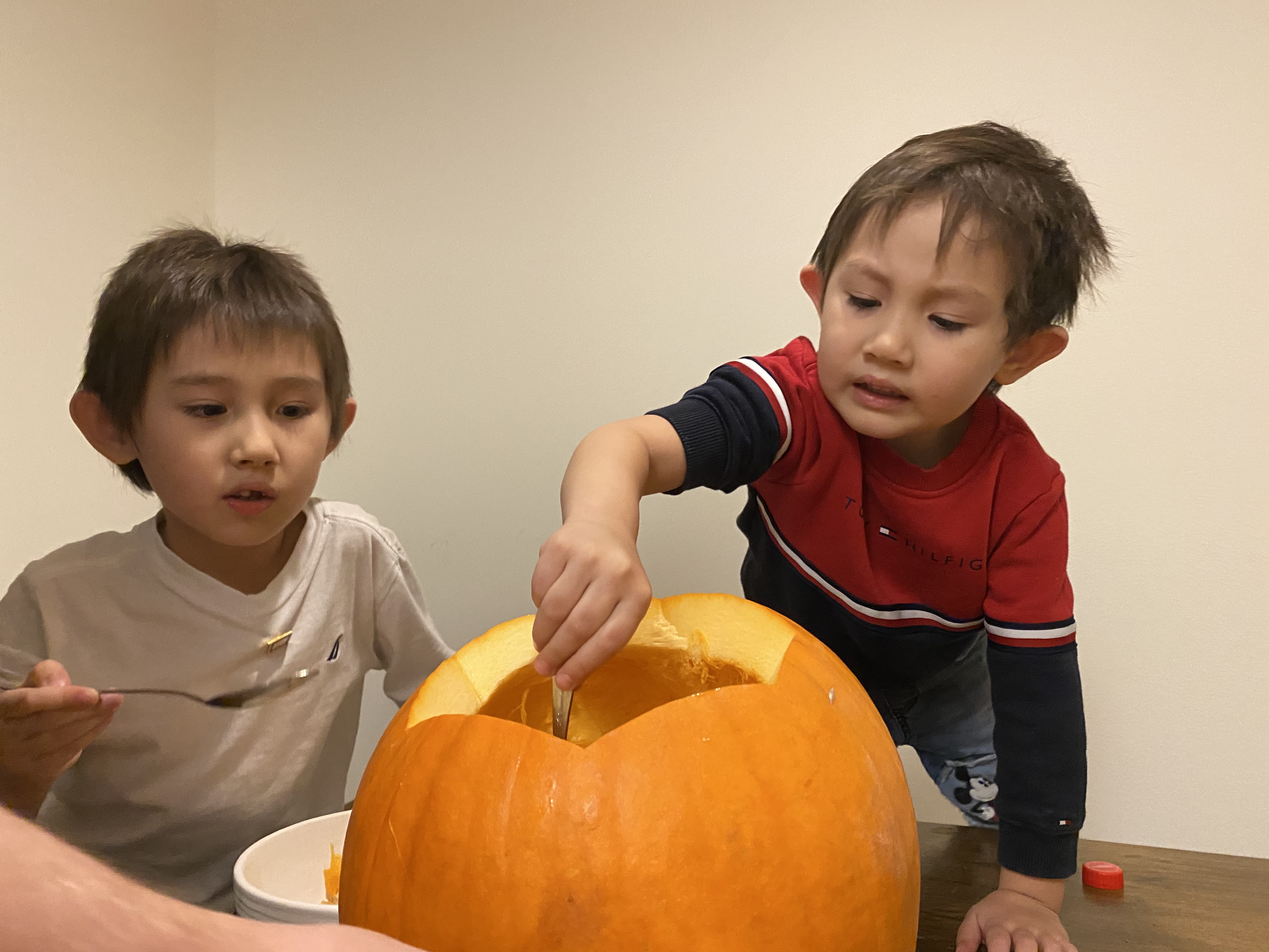 할로윈 전날 와플이 아부지와 아이들의 잭오랜턴 만들기 현장... 으로 시작했으나 난장판으로 끝남요.