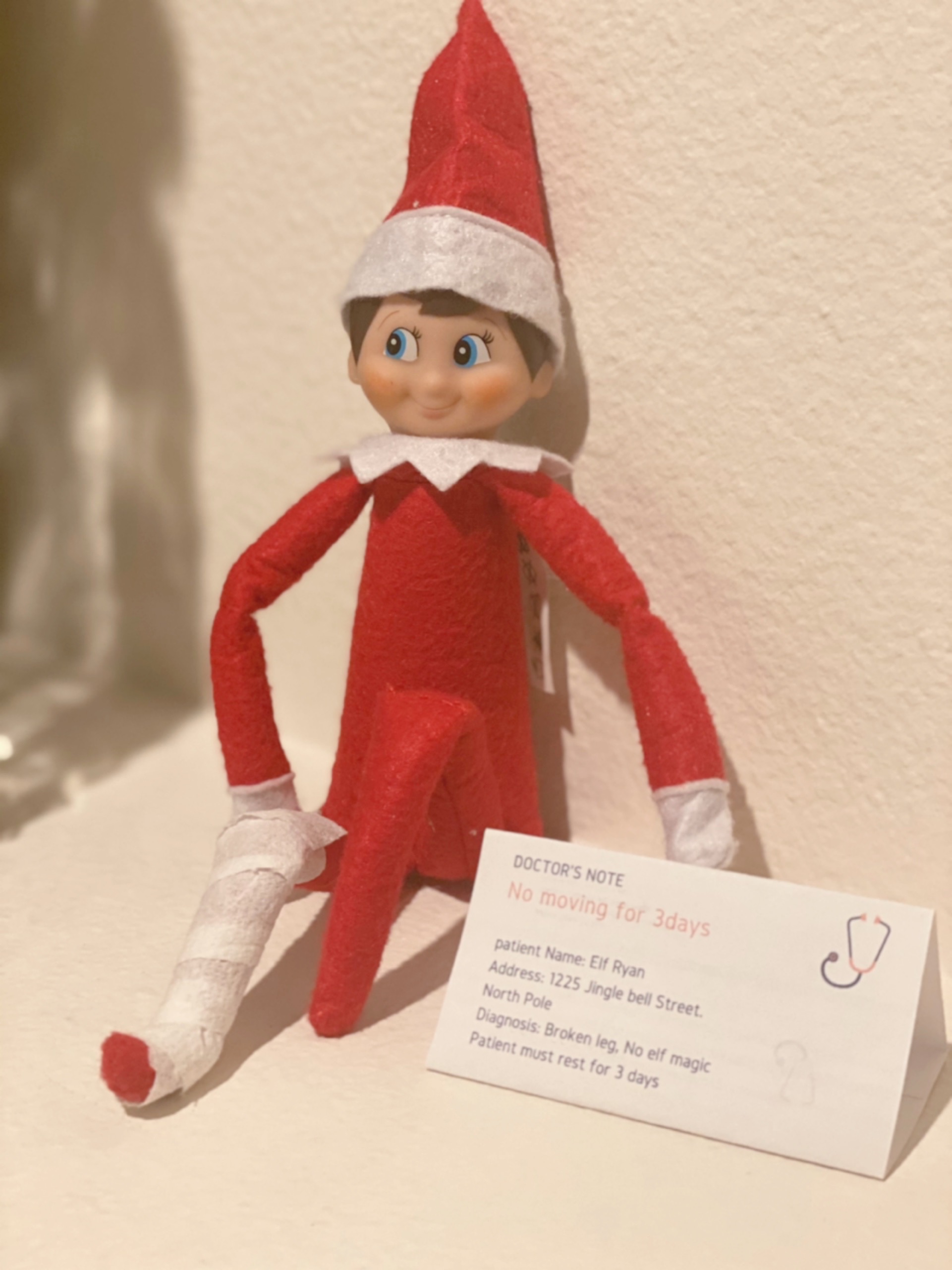 마침내 다리 부러진 엘프!!!! 다리가 부러져서 3일간 북극에 못 돌아가서 쉬어야 하는 엘프. 그 덕에 저는 3일간의 휴가를 얻었지요. ㅎㅎㅎ