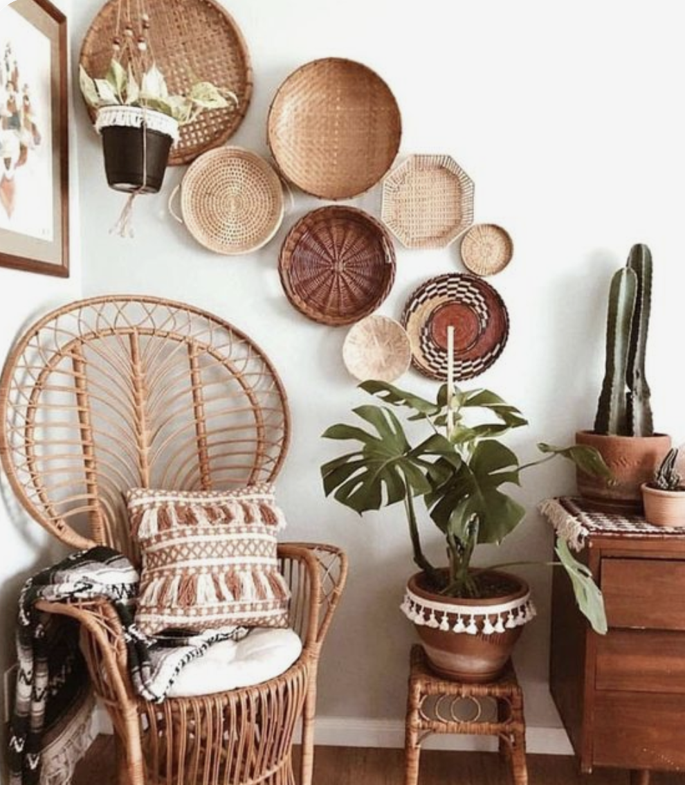 그 즈음부터 유행했던 채반 인테리어의 인기는 식을 줄 모르고, 작년 중반부터 boho 인테리어 디자인으로 뜨겁게 달아오르면서 채반 인테리어는 지금 절정을 달리고 있답니다. boho는 우드 소재, 라탄 소재, 린넨 소재등을 이용해서 좀 더 자연 친화적이면서도 부드럽고 따뜻한 느낌의 인테리어인데요,그래서 저도 보호 스타일 인테리어를 눈여겨 보면서 유튜버들 인테리어 영상도 보고, 사진들도 많이 찾아 보고 스크랩 해 두고 있는데요,