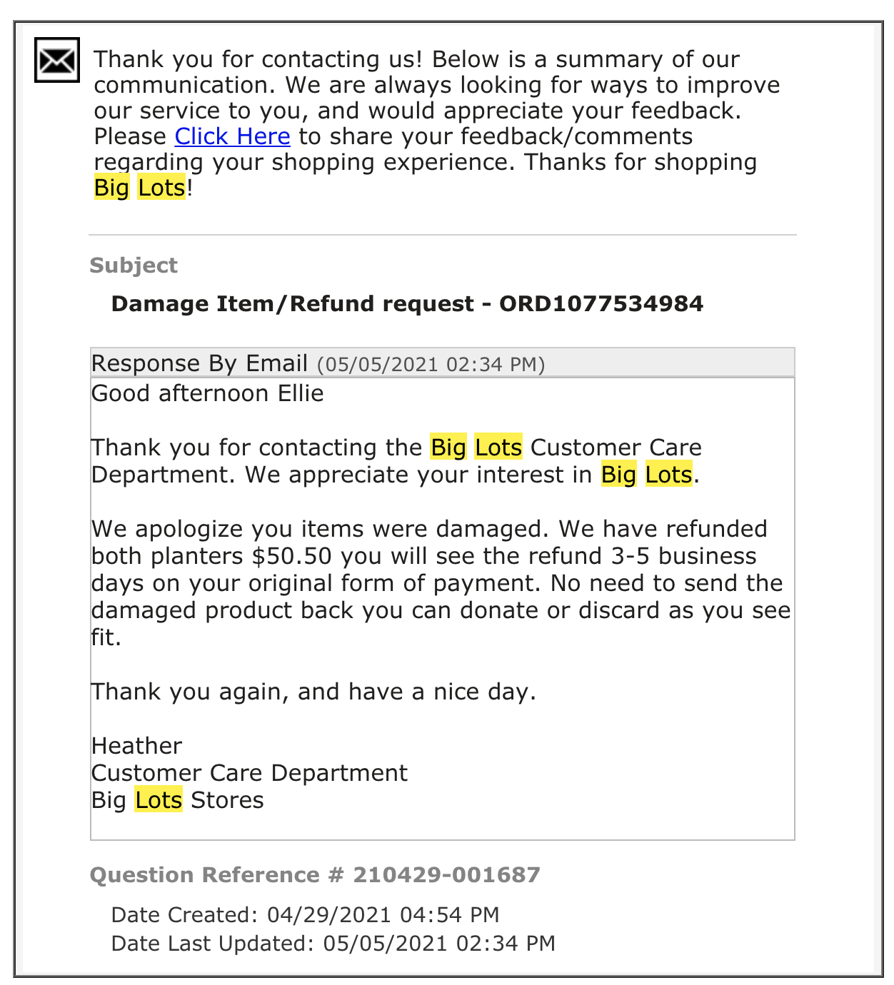 그랬더니 고객 센터에서 제품들 사진을 보내 달라고 하더라고요. 그래서 각각의 사진을 보냈더니 제품 두개다 환불 처리 해 주겠다, 그리고 반품 할 필요는 없다.