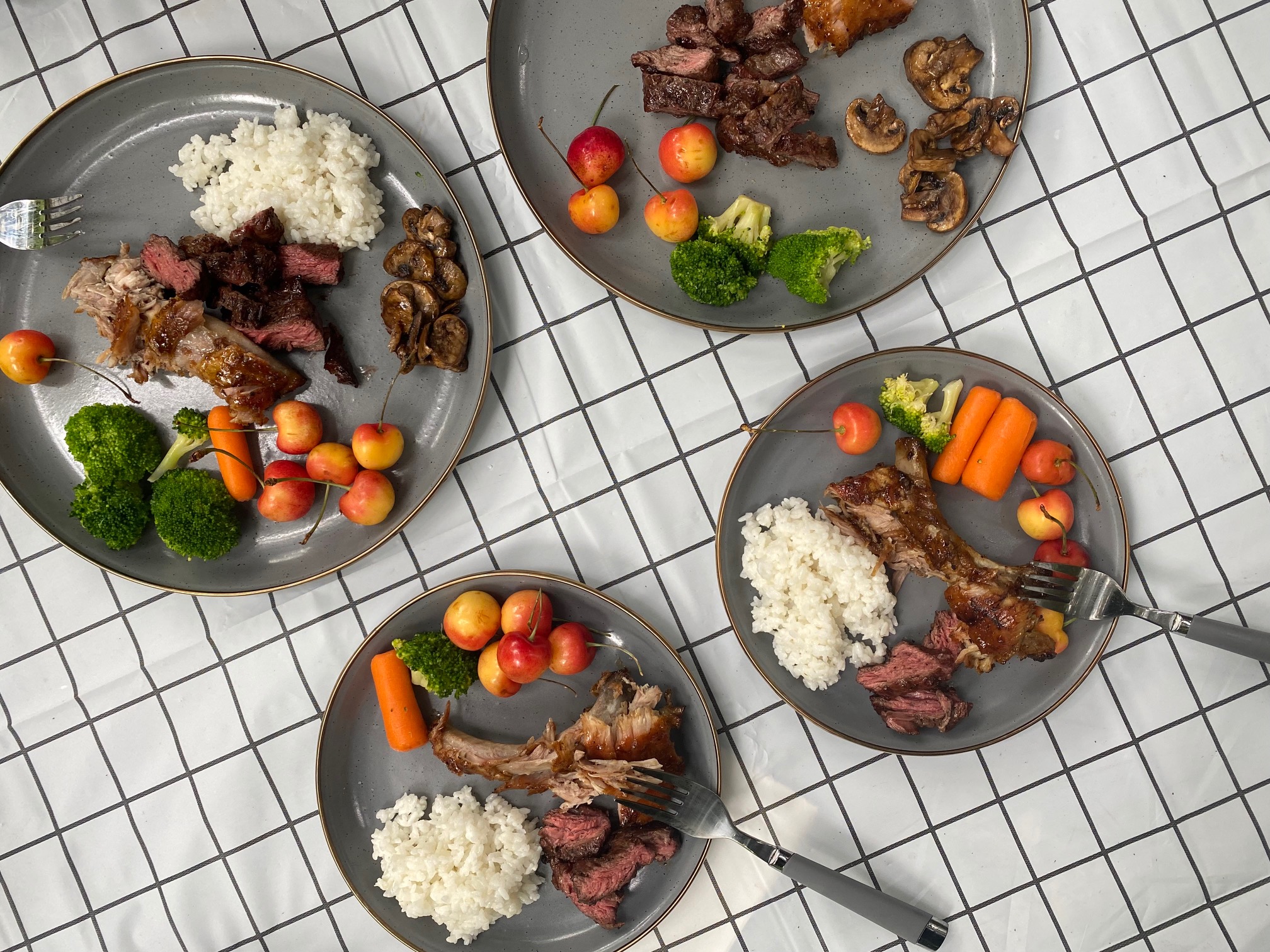 그래서 아침부터 백립 굽고, 첫날 남았던 스테이크 마저 굽고 했더니 저녁 만찬 같은 아침 식사가 준비 되었습니다.