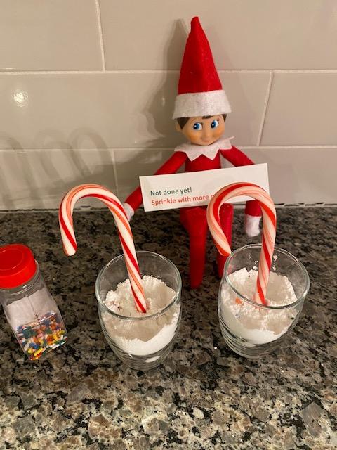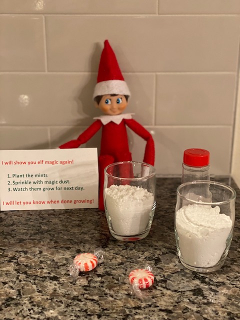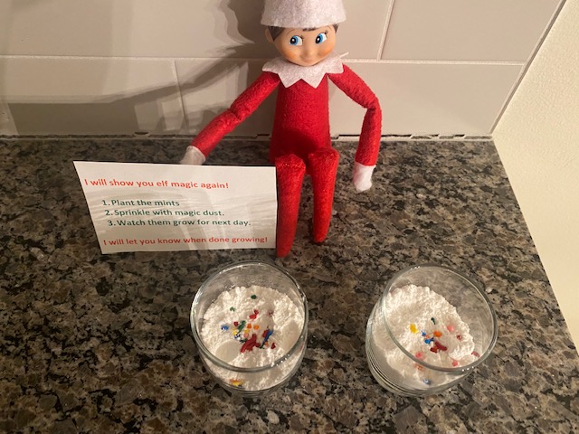1일차에 페퍼민트 캔디와 슈가 파우더를 준비하고 짜잔~ 페퍼민트 캔디 씨앗을 심고, 스프링클을 뿌려 주면 엘프가 매직을 보여 줄거라는 컨셉이죠.