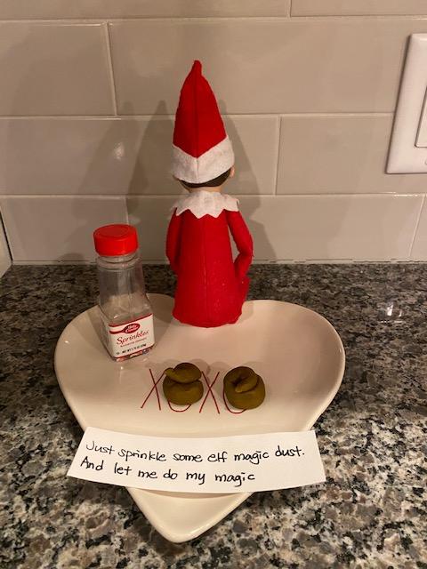 마트에서 아이들이 좋아하는 장난감을 봤는데 엘프 모양으로 나온게 있더라고요. 아이들이 좋아할 것 같아서 샀는데 그냥 주는 것보다 이렇게 엘프를 가장해서 주면 1일 아이디어도 떼울 수 있고, 아이들은 두배로 기뻐하니까요.