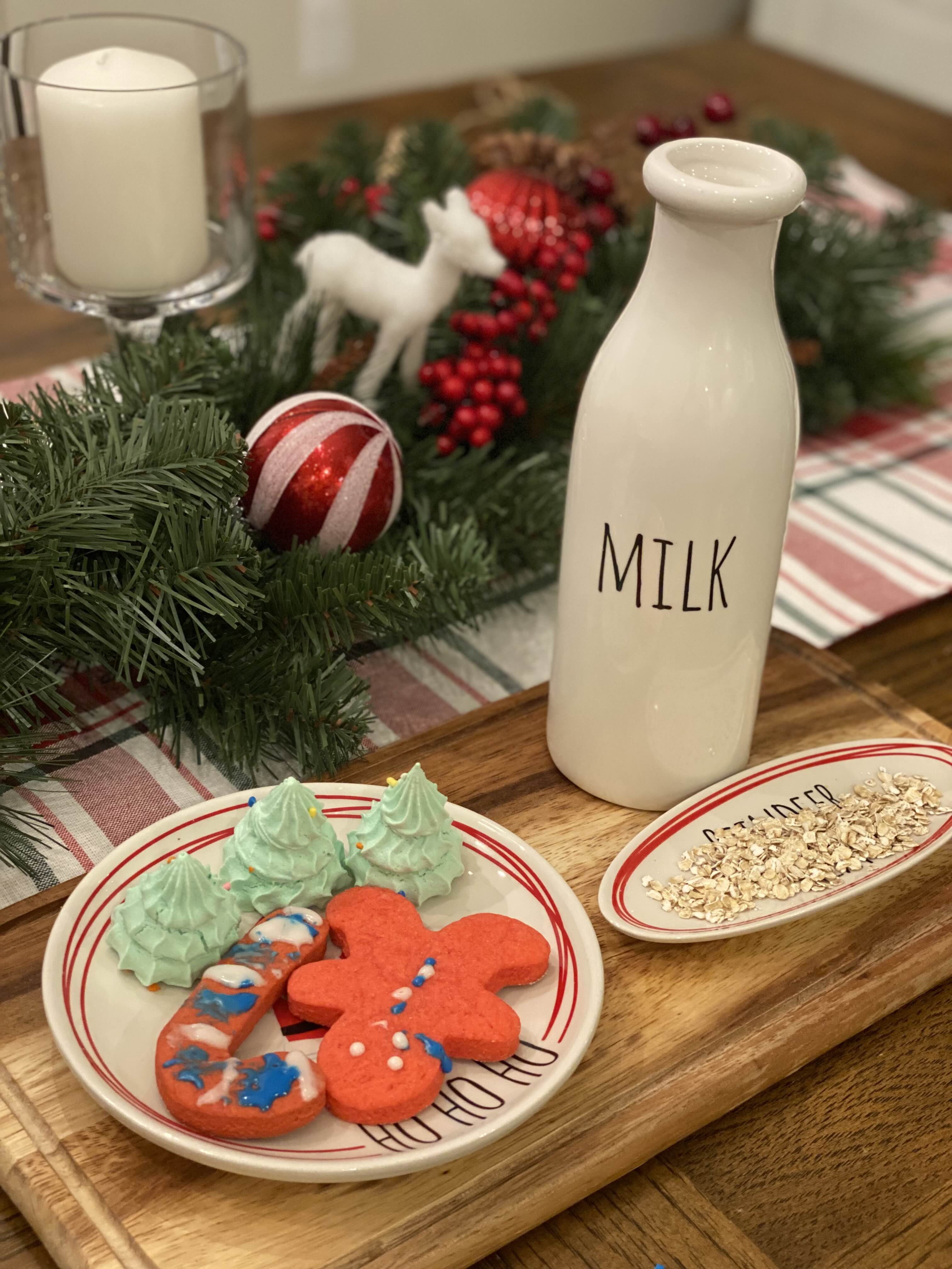 각자 만든 쿠키도 접시에 올리고, 루돌프 먹이가 될 오트밀도 루돌프 전용 접시에 올리고, 우유도 부어 놓고 선물을 기대하며 일찍 자러 갔어요.