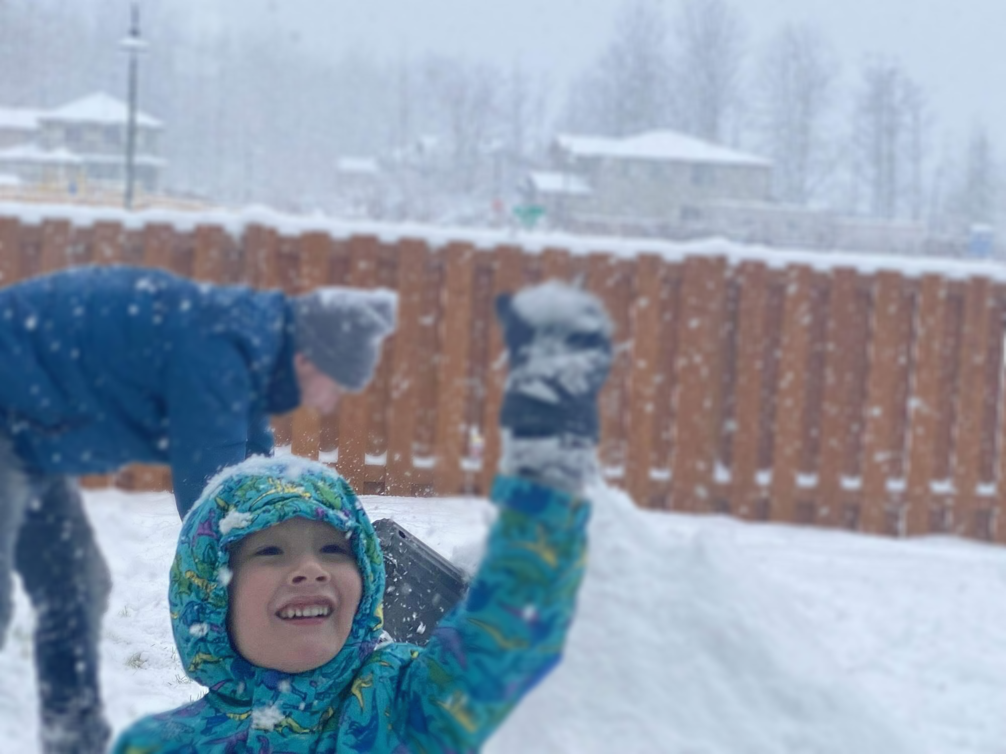 애들은 밖에 나가서 신나게 눈 가지고 놀았어요.