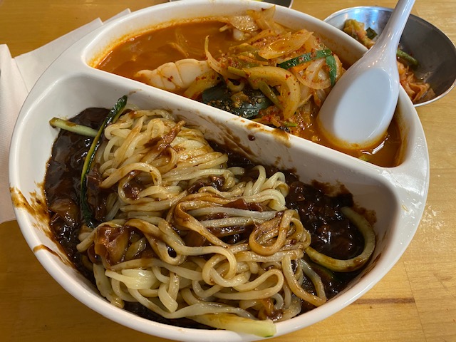 그리곤 한인 마트 옆에 있는 중국집에 가서 짬짜면에 탕수육 시켜서 먹고 왔죠.