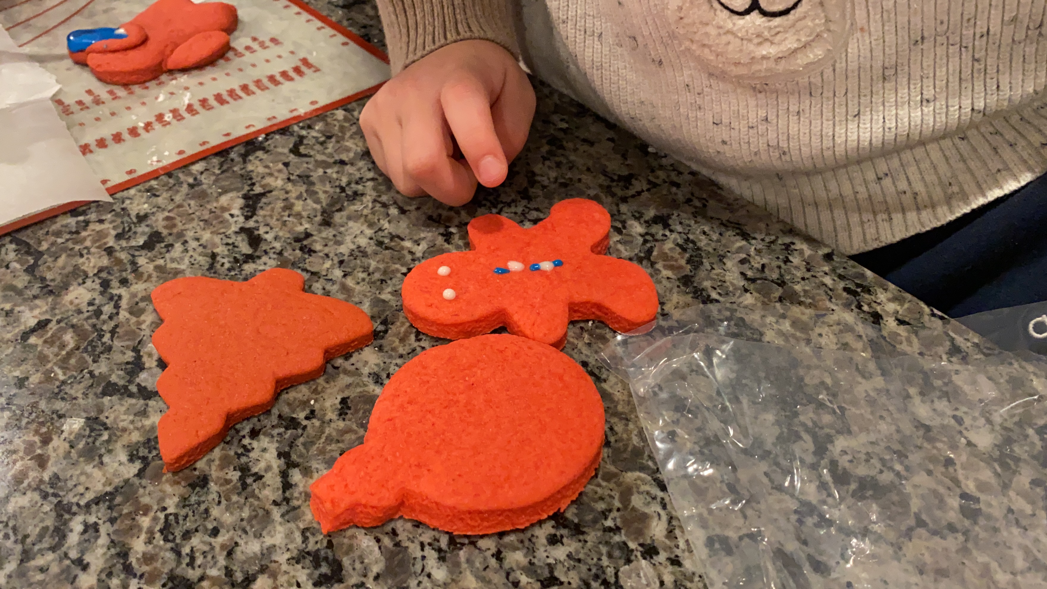 크리스마스 이브에 아이들은 산타에게 줄 쿠키를 구워야 한다며 엘프가 선물로 놓고간 쿠키 믹스로 쿠키를 만들었어요.