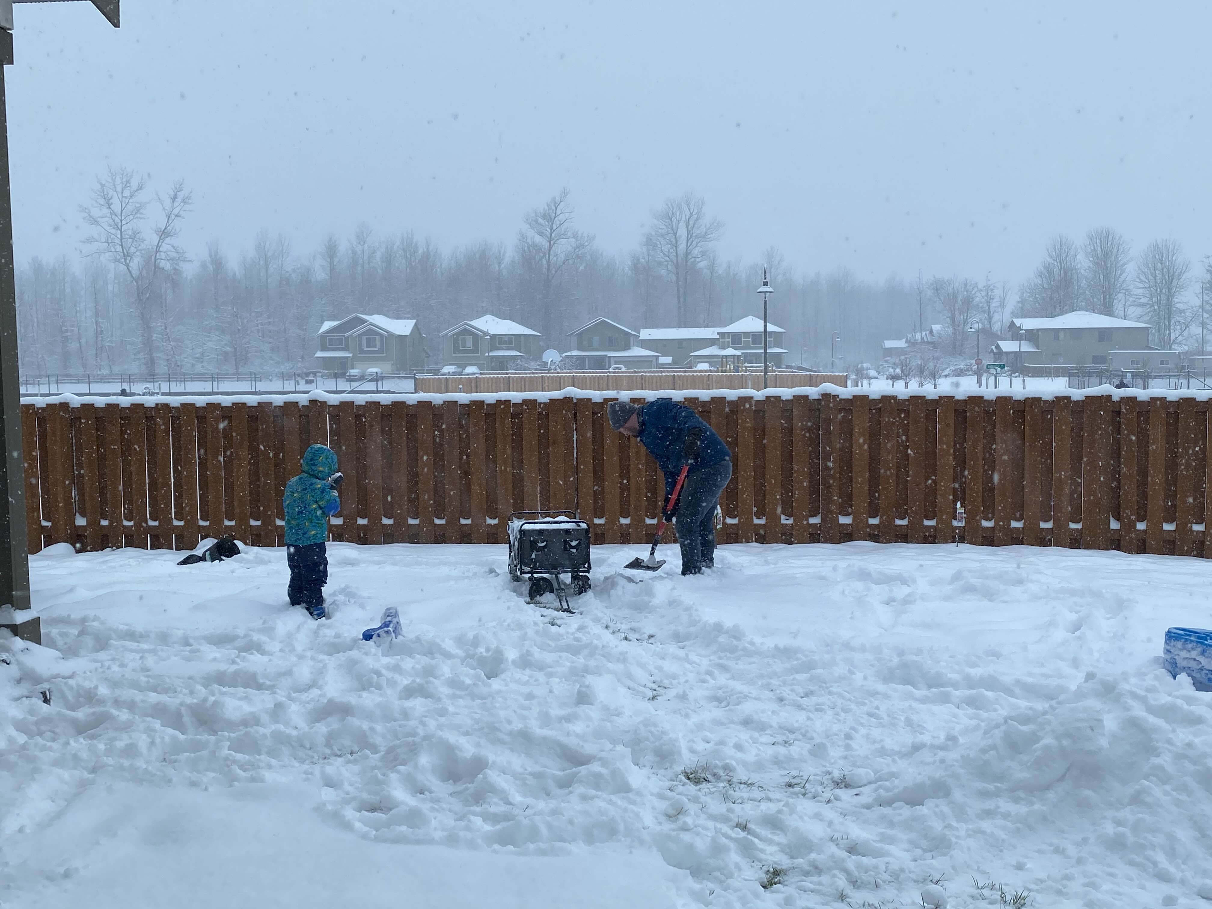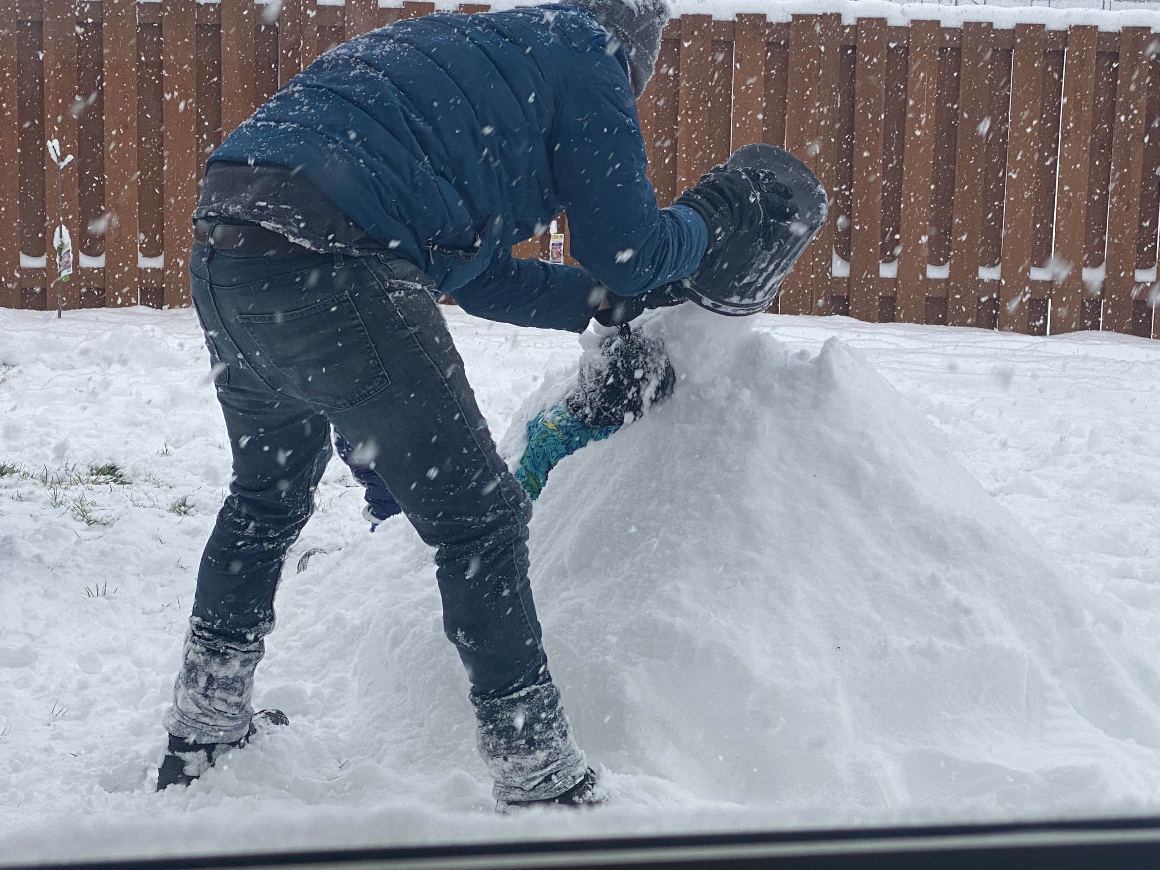 열심히 삽질 해서 눈 퍼담아 뭐 하나 했더니... 애를 묻고 있어요.