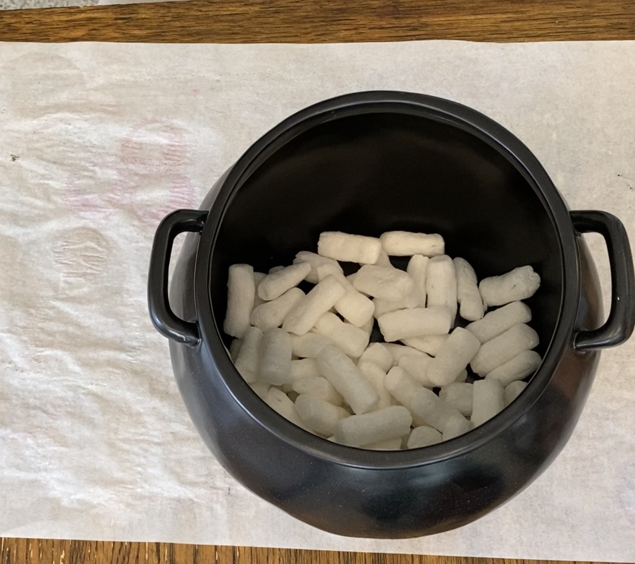 그래서 마녀 수프 솥에다가 택배 박스와 함께 온 충전재를 넣어 채워 줍니다.