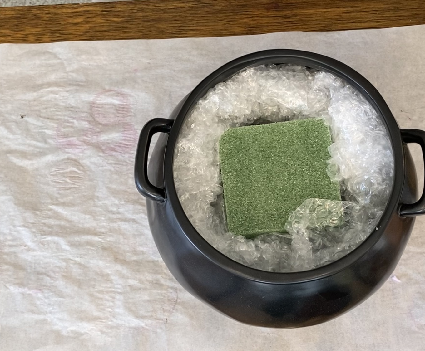 탈지면을 덮어 주면 현실감 없는 모락 모락 연기 나는 느낌의 마녀 수프 항아리 완성! 현실감은 1도 없다는게 팩트!!!