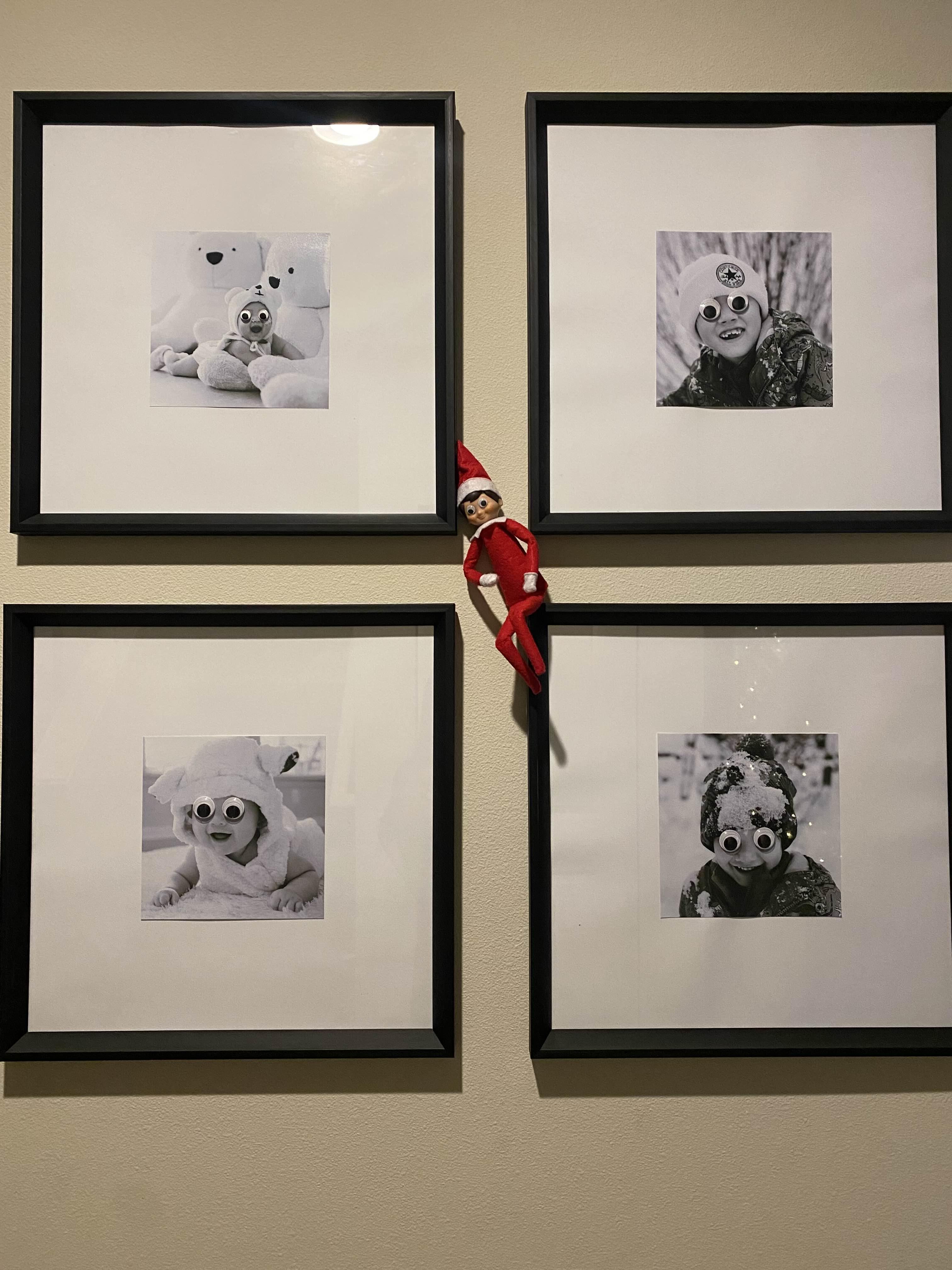 아이들의 사진에 장난질을 한 엘프... 눈에다가 크래프트용 눈을 붙이고, 엘프 자신의 눈에도 붙였어요.