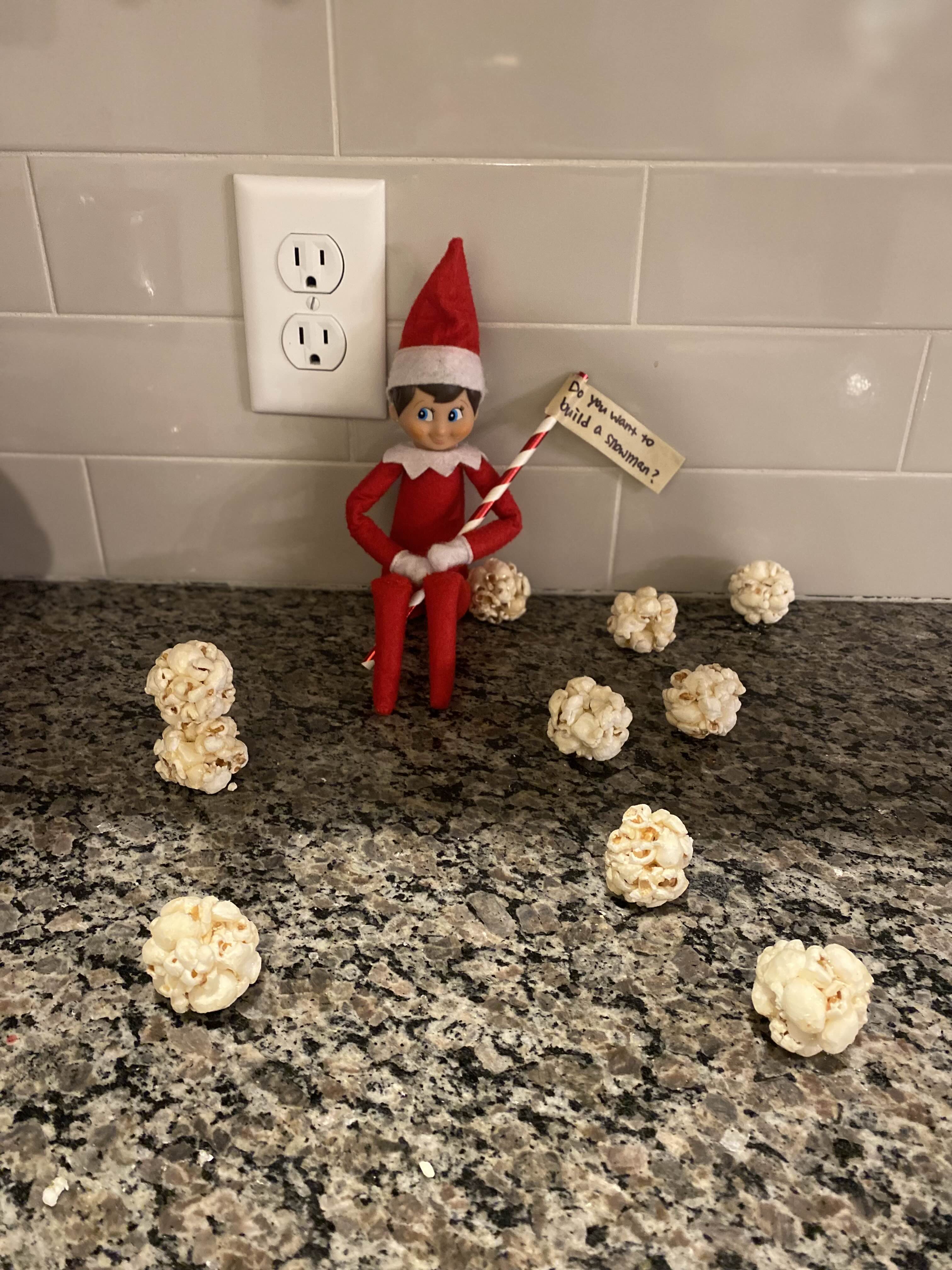 마트에서 발견한 스낵인데 달달한 팝콘을 동그랗게 뭉쳐서 스노우볼 스낵이라며 팔고 있길래 덥석 카트에 담았지요. 바로 엘프 온더 쉘프에 써 먹을 아이디어가 떠올랐거든요.