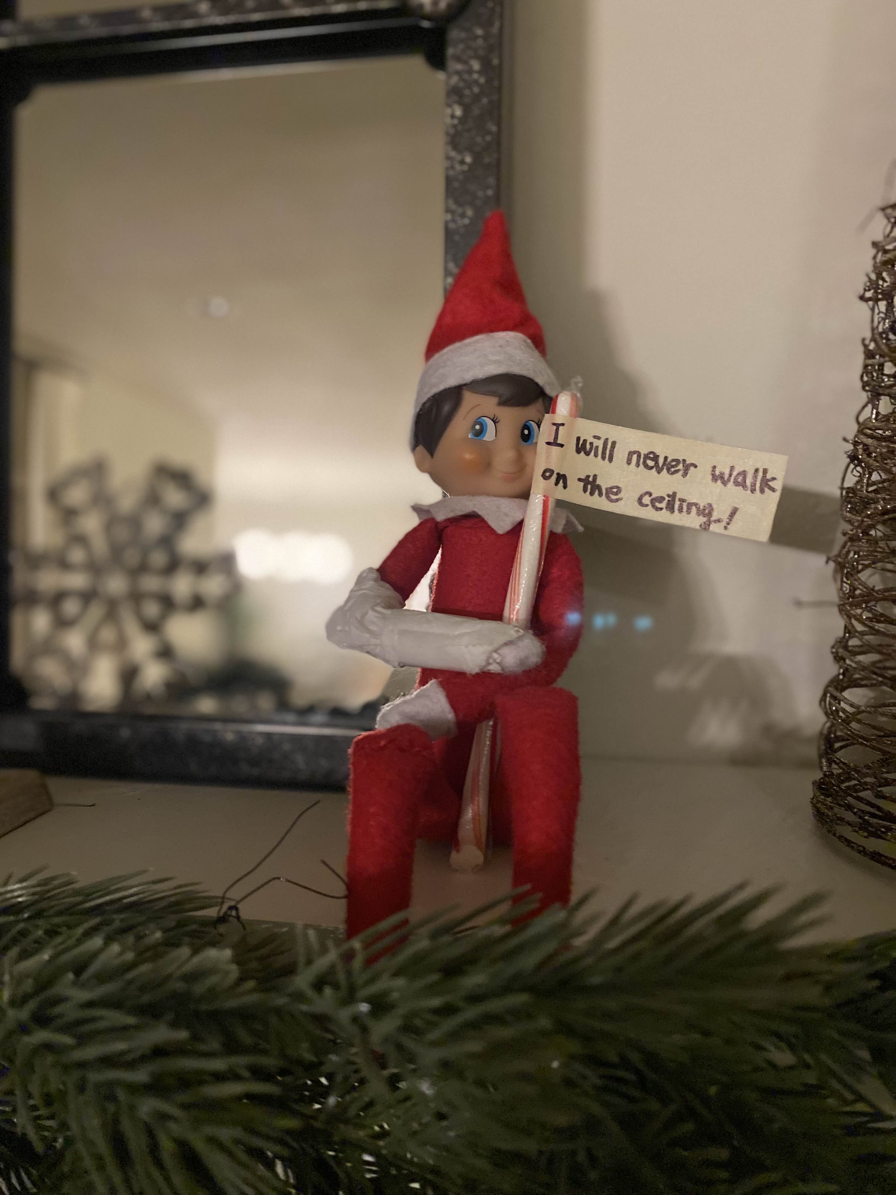 크리스마스 전날인 24일, 아이들에게 유일하게 엘프를 만질 수 있는 날!! 선물을 주러 온 산타가 선물을 두고, 엘프를 데려갈 테니 엘프가 매직을 잃어도 상관이 없기 때문에 24일은 엘프를 만질 수 있고, 작별 인사도 할 수 있다고 작년에 엘프로부터 편지를 받았기 때문에 아이들은 잠들기 전 엘프와 작별 인사를 하고 사진을 찍었어요. 그러나 여전히 매직을 잃어 버리면 엘프가 아플까봐 만지지는 못하고 악수만 하겠다는 아이들.. 그래서 가볍게 악수만 했답니다.