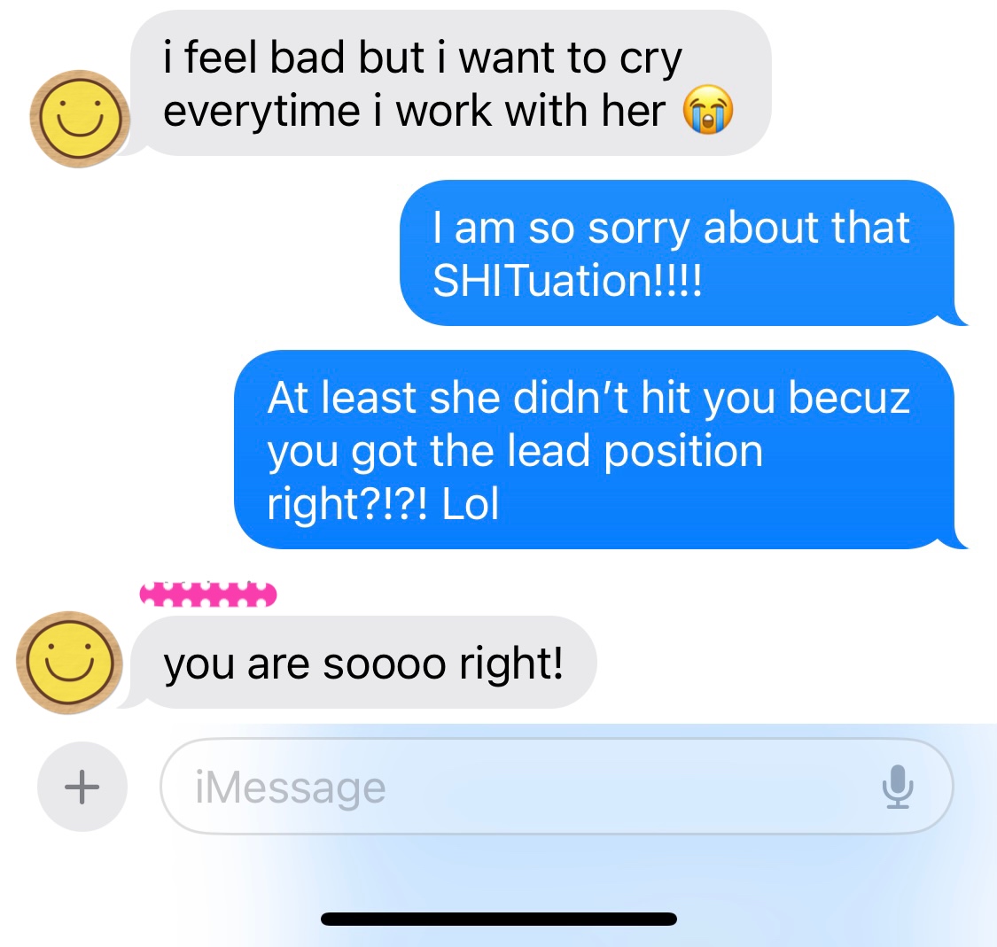 엘리: 그런 개똥같은 상황이라니 유감이네...적어도 네가 리드 포지션이 됐다고 널 때리지는 않았잖아!