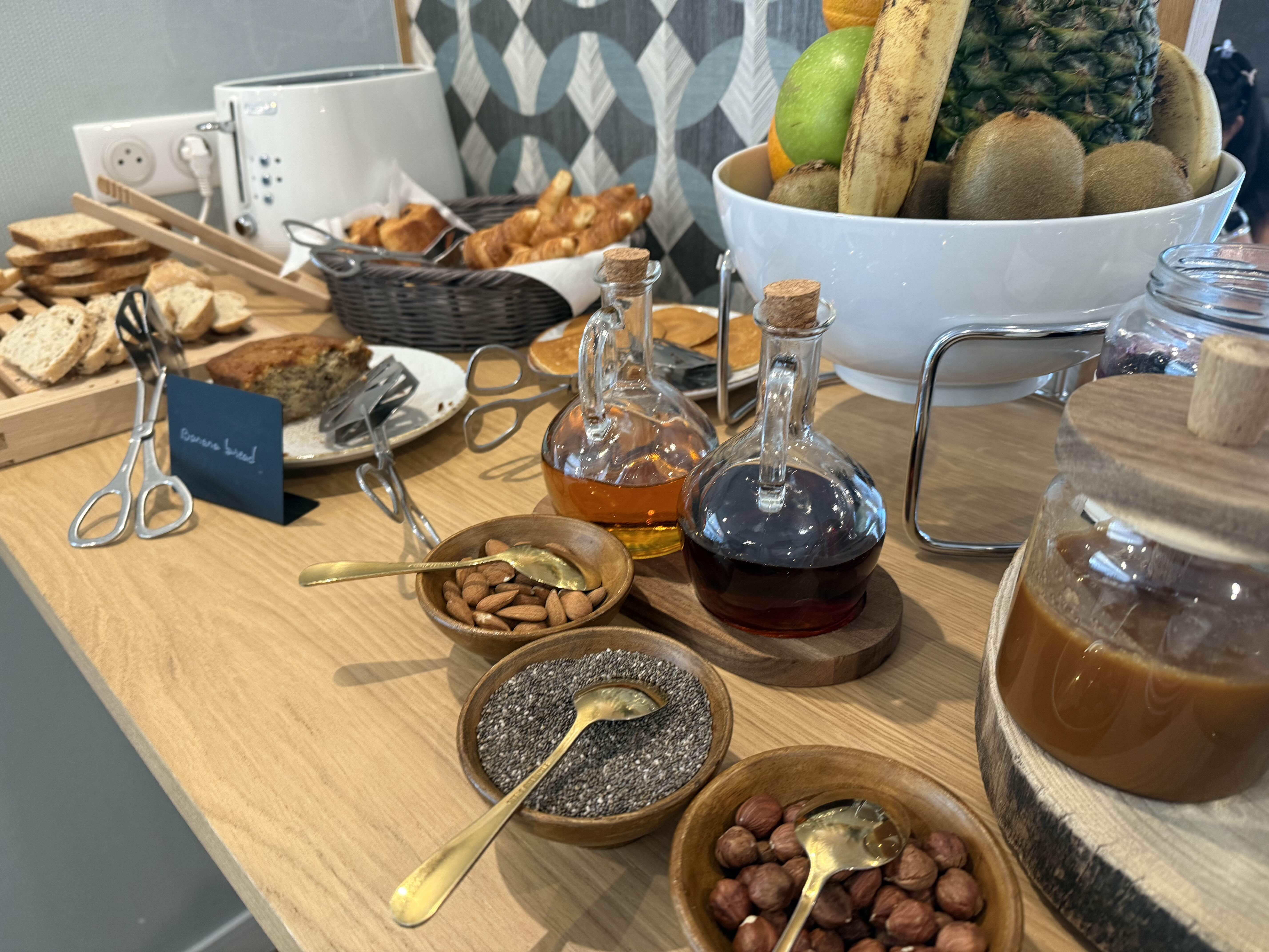 빵의 나라답게 크로와상과 각종 빵 종류, 잼, 버터, 스프레드, 시럽등 기호에 맞게 먹을 수 있도록 준비되어 있었고요.