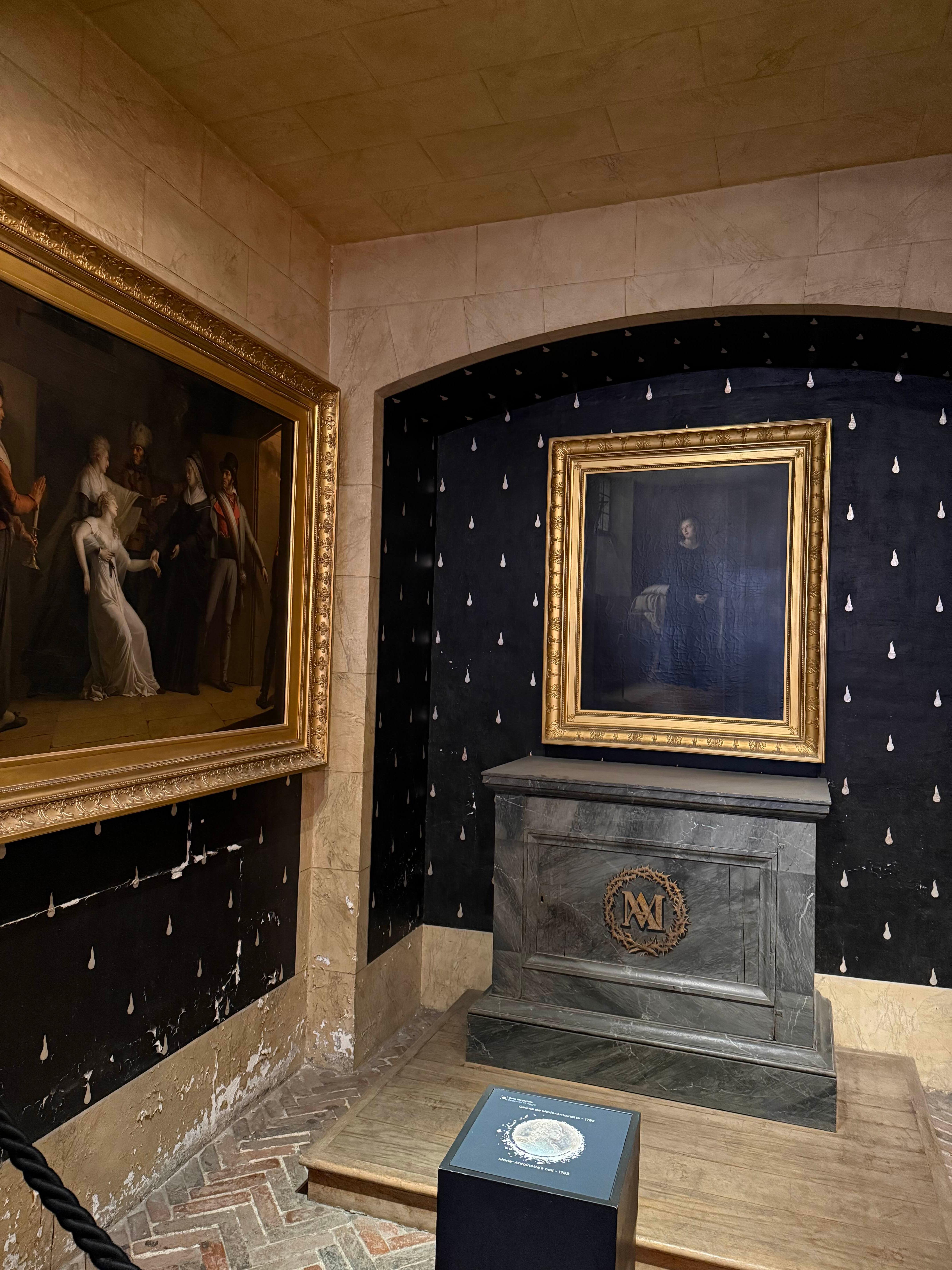 이곳이 마리 앙투아네뜨가 수감돼 있던 방이에요. 베르사유의 화려한 꽃이었던 그녀는 이 작고 차가운 공간이 그녀의 마지막 방이 될 거라는 것을 알았을까요?