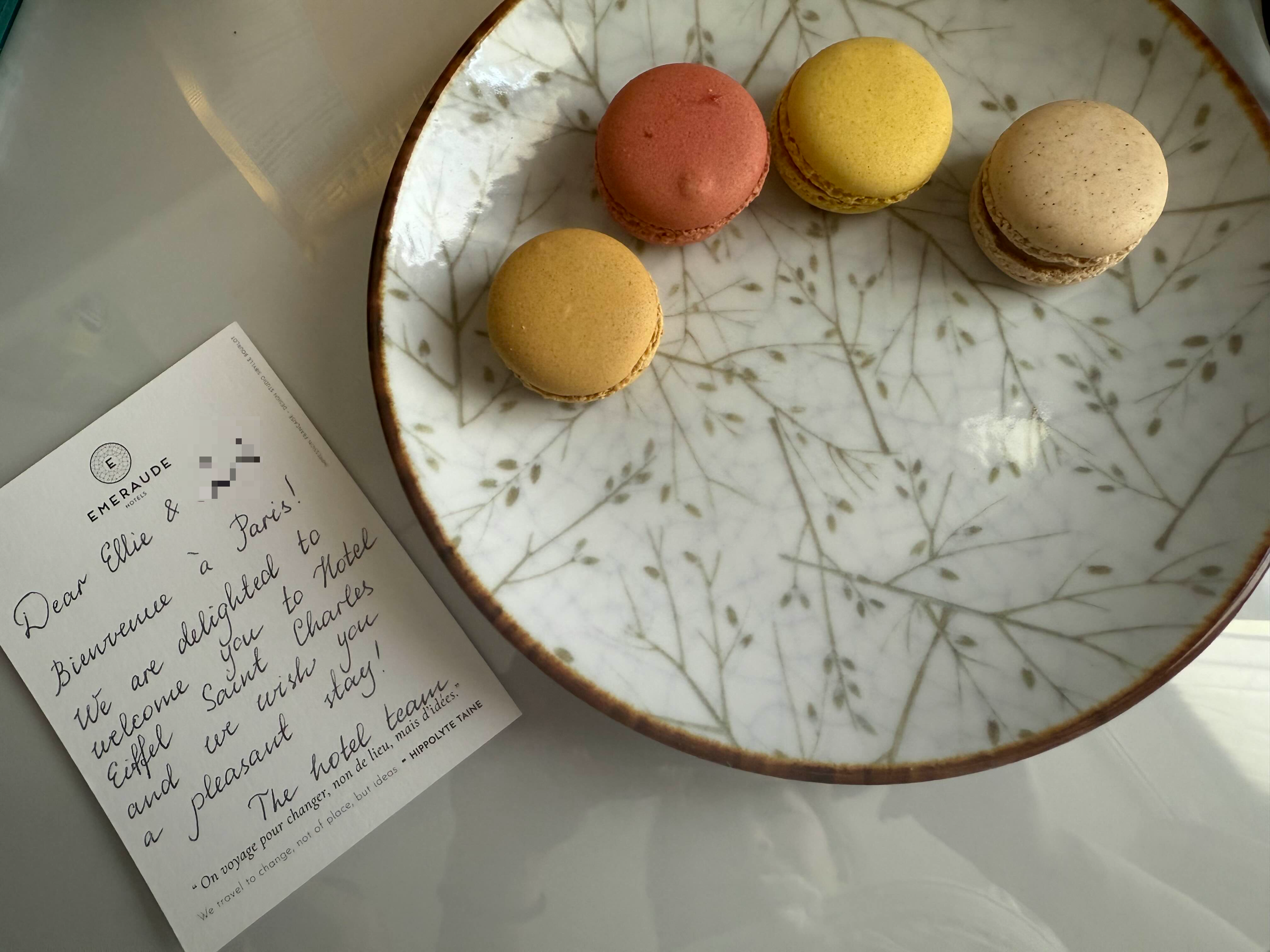 호텔 방으로 돌아오니 마카롱이 놓여져 있었어요. 마카롱의 원조 프랑스에서 드디어 마카롱을 먹어 보는 거야?!?!