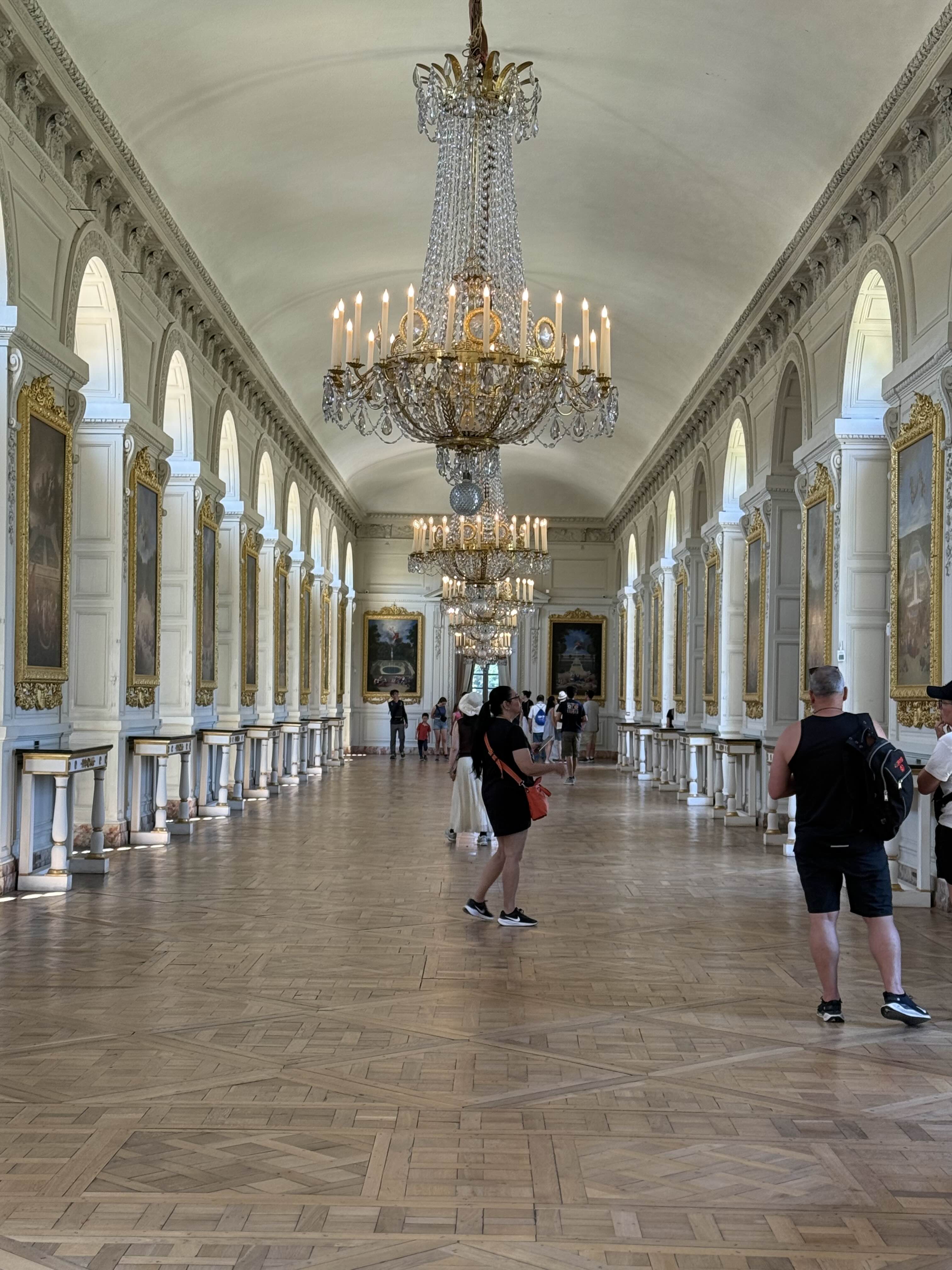 길게 늘어선 샹들리에와 환한 창을 통해 들어온 빛이 거울에 반사되어 화려하다 못 해 눈부실 정도예요. 그냥 와아~ 소리가 절로 나옵니다.